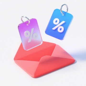 现代感3D风设计,玻璃质感标签悬浮于红色信封之上,轻拟物风格融合科技感,传递节日促销信息。