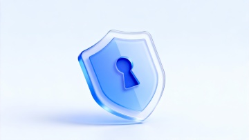 未来感与科技感交融的3D微缩场景,透明玻璃风盾牌守护数据核心,清透质感与体积感结合,展现智能安全防护主题。