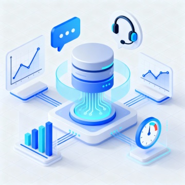 未来感与科技感交织的3D风插画,采用清透玻璃质感与轻拟物设计,展现数据流动与智能互联,几何结构突出体积感,蓝色调传递高效与现代。