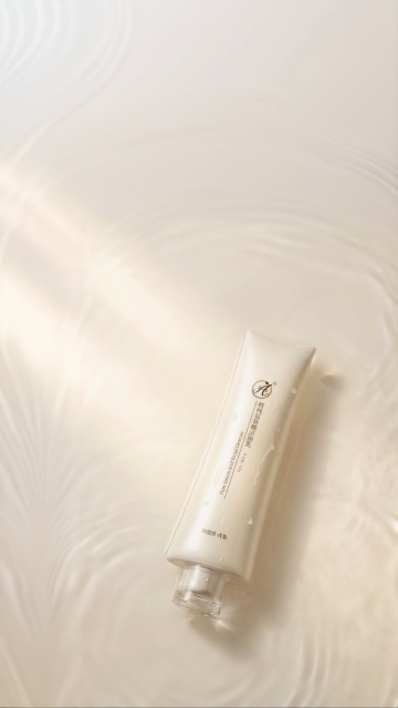 产品躺在波光粼粼的水面上,整体画面充满清凉水润感,极简夏日美学