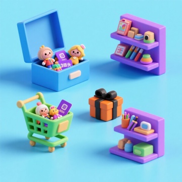 软3D风卡通形象,甜蜜可爱,塑料质感包装,彩虹色系设计,充满童趣与节日氛围。