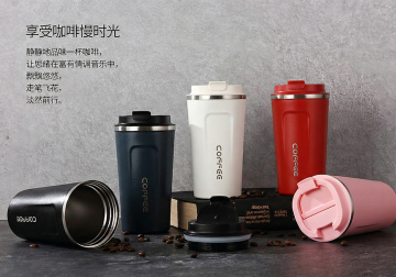 一个不锈钢保温杯,杯盖打开,杯内没有牛奶,旁边放着一杯倒好的牛奶和一个小勺子,背景是干净的厨房台面,光线明亮,整体画面简洁清晰,突出不锈钢保温杯的质感和“不能泡牛奶”的概念