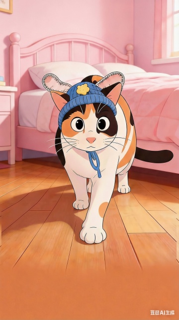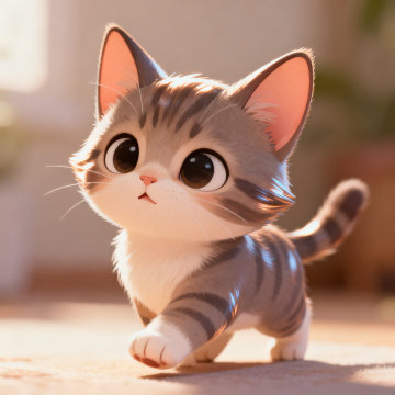 软3D风格的萌猫栖于梦幻树梢,毛发生长风与虚拟自然融合,清新柔和色调中透出可爱与梦幻感。