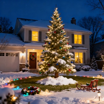 复古感插画风,厚涂手法营造温馨雪夜,拟人化人物与马车穿梭于红灯高挂的小镇,水彩质感融入油画光影,传递喜庆节日故事感。
