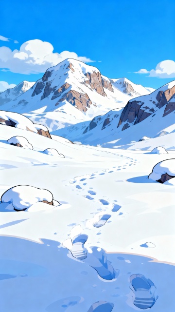 壮丽的雪山全景摄影,雄伟的山峰群在清澈的深蓝色天空下巍峨耸立,山顶覆盖着洁白厚实的积雪,山体岩石呈现出深褐色与灰色的自然纹理,阳光从侧上方照射,在山峰表面形成明亮的高光与深邃的阴影对比,勾勒出尖锐的山脊和陡峭的岩壁轮廓,几朵形态轻盈的白云点缀在山峰之间的蓝天中,近处的山峦呈现出温暖的棕黄色调,整体画面气势恢宏、细节丰富,具有极高的写实感和自然光影层次,营造出宁静而壮阔的高山氛围。