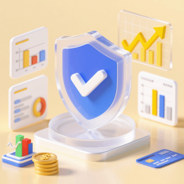 未来感科技蓝调,3D玻璃风设计,清透光影与体积感交织,轻拟物图标环绕,展现数字安全与数据流转的动态场景。