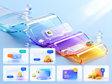 未来感与科技感交融的3D玻璃风设计,轻拟物元素叠加液态光影,清透层次间流动数字对话与金融符号,展现智能交互的视觉新境。