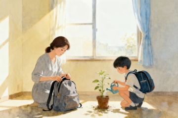 梦幻水彩插画风,母子互动温馨可爱,泡泡与星光点缀,营造温暖治愈的亲子时光。
