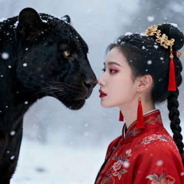 梦幻3D风,优雅少女骑乘黑豹,唯美感与超现实主义交织,展现虚拟现实的奇幻魅力。