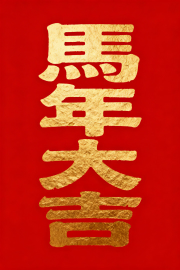 红底鎏金,水墨笔触挥洒“大吉大利”,融合中式书法与大字风,喜庆浓郁,尽显新春祝福之韵。
