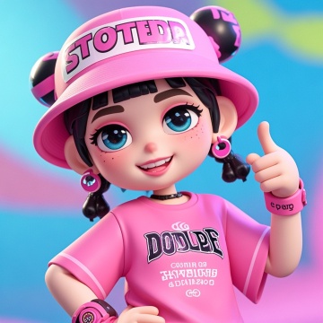 街头cool女孩,多巴胺涂鸦感3D人偶