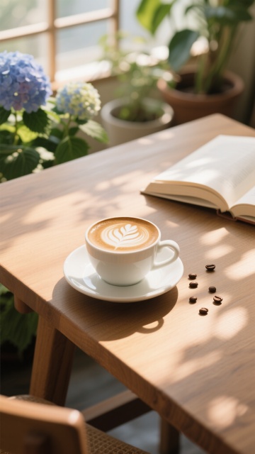 一张温馨生活风格的早餐场景特写照片,晨光从左侧窗户柔和洒落,在白色瓷杯和奶壶上形成细腻的高光与阴影,透明玻璃奶壶正将乳白色的牛奶以优美的弧线缓缓倒入下方带有精致花纹的白色瓷杯,杯口泛起细密的奶泡,牛奶流动的瞬间清晰可见。前景中,白色瓷杯置于配套的白色碟子上,碟子边缘有简约的描金装饰。背景更换为铺着浅灰色亚麻桌布的餐桌,上面摆放着新鲜出炉的金黄色牛角面包、几颗鲜红饱满的草莓和一小束淡雅的白色洋桔梗,整体色调以白色、米色、浅灰为主,点缀着食物的自然色彩,营造出宁静、舒适、充满生活气息的早晨氛围,画面构图采用经典的三分法,焦点集中在牛奶倒入杯中的动态瞬间,背景元素模糊处理以突出主体,光影柔和自然,呈现出温暖治愈的居家感觉。