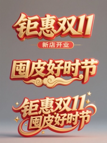 3D鎏金大字搭配火焰粒子,金属质感与喜庆红背景碰撞,营造热血促销氛围,双11狂欢盛典尽显体积感与视觉冲击力。