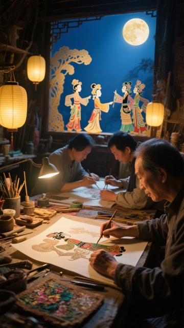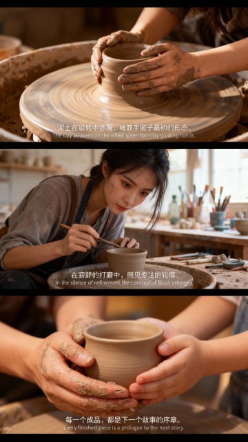 写实风格摄影,画面整体采用柔和的靛蓝色与暖橙色对比色调,一位约四十岁左右的中年男子,身着象牙白传统中式长衫,正专注地在古朴的木质茶桌前进行茶道仪式,他手持茶勺,神情沉静而专注,眼神温和。背景是深色木质博古架,上面整齐摆放着多个靛蓝色与橙色渐变的陶瓷茶罐,左侧悬挂着一盏散发暖橙色光芒的中式纸灯笼,灯笼上有模糊的书法文字。茶桌上摆放着靛蓝色的茶碗、深色陶制茶炉、茶则、茶针等茶道器具,还有一本打开的线装古籍。整体光影柔和,侧逆光勾勒出人物的轮廓,营造出宁静、典雅而略带现代感的氛围,画面构图遵循三分法,人物位于右侧黄金分割点,前景茶具清晰,背景书架稍显虚化,形成自然的景深效果,色彩和谐统一,细节丰富,质感细腻,展现出传统茶道文化的韵味与中年男子沉稳内敛的气质。