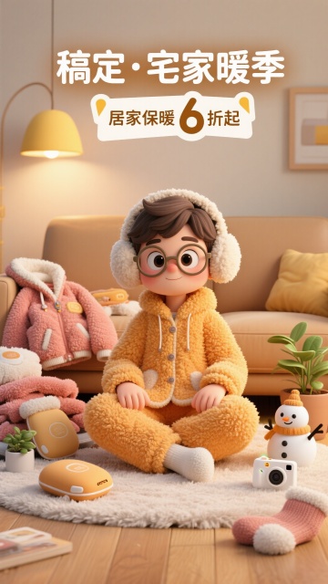 软3D风拟人猫,温馨家居场景,光影柔和,重拟物细节,萌趣对话传递舒适可爱感。