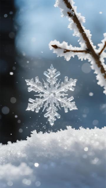 一张具有超写实摄影风格的冬季雪景城市海报,画面主体为近景细腻的白雪覆盖的地面,雪的质感呈现出蓬松、带有细微冰晶反光的特征,阳光从画面上方柔和洒下,形成明亮的高光区域和淡淡的蓝色阴影,营造出清冷而宁静的氛围。远景是被白雪覆盖的连绵山脉轮廓,天空呈现出清澈的浅蓝色并带有少量白色云彩。在保持整体色调(以纯净的白色和浅蓝色为主)和光影效果(柔和顶光、清晰的明暗过渡)的基础上,融入城市元素:画面中景处有被积雪覆盖的现代城市建筑群剪影,屋顶和建筑边缘堆积着厚实的白雪,部分建筑窗户透出温暖的黄色灯光,与冷色调的雪景形成对比。同时,天空中飘洒着轻盈的雪花,雪花形态清晰可见,部分雪花落在前景的雪地上和建筑上,增强冬季氛围。整体构图采用近实远虚的景深效果,视觉焦点集中在前景的雪地纹理和中景的城市建筑轮廓上,传达出冬日城市的静谧与祥和之美,信息传达简洁明了,符合冬季主题宣传的设计感。