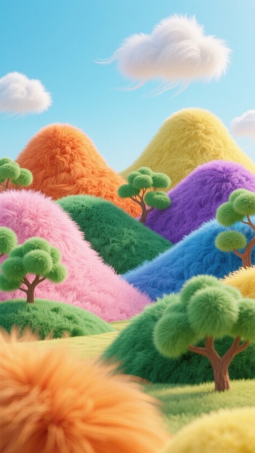 清新3D卡通风格,拟人云朵与虚拟自然融合,营造梦幻童话氛围。