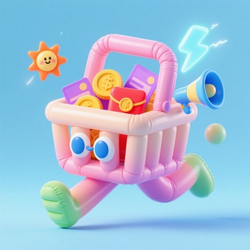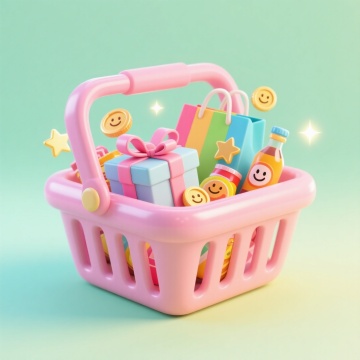 六个风格各异、色彩缤纷的购物车,以整齐的网格状排列在纯白色背景上。每个购物车都保持了圆润可爱的3D卡通造型和光滑塑料质感,但具有独特的外观设计和主题元素:第一个是粉色草莓主题购物车,点缀着草莓图案和绿色叶子,车内装满草莓礼盒和粉色购物卡;第二个是蓝色海洋主题购物车,带有波浪纹路和贝壳装饰,车内有蓝色礼盒和海洋元素;第三个是黄色向日葵主题购物车,有向日葵图案和黄色花瓣装饰,车内是黄色礼盒和太阳花;第四个是紫色星空主题购物车,带有星星和月亮图案,车内有紫色礼盒和星空元素;第五个是绿色森林主题购物车,有树叶和蘑菇装饰,车内是绿色礼盒和森林元素;第六个是橙色糖果主题购物车,带有糖果条纹和蝴蝶结,车内装满彩色糖果礼盒。每个购物车周围都漂浮着与主题相匹配的小元素,如星星、硬币、折扣卡、礼物盒等,整体风格统一为明亮欢快的卡通3D设计,色彩饱和鲜明,光影柔和,营造出活泼可爱的购物氛围。