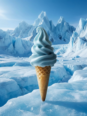 清透玻璃质感的冰激凌,融合未来感与虚拟自然,3D重拟物风呈现清爽夏日气息。