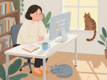 手绘插画风格,卡通人物坐在书桌前,面前摊开的书上写 “心理咨询师考试”,旁边有闹钟(显示 7:00)、台灯和绿植,墙上贴着 “今日计划:完成 2 章教材 + 50 道真题” 的便签,人物头顶有思考气泡(内有 “马斯洛需求层次理论” 示意图),底部文字 “每天进步一点点,考试通关不是梦”,整体风格轻松励志,吸引年轻考生。