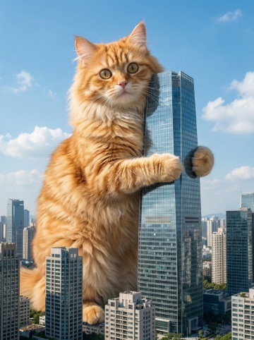 让图片1的小猫变成巨怕老鼠但是又爱逞能的小猫,看到对面街头走来一只骄傲的小老鼠,炸着胆子要走过去的样子,背景是万圣节的街头