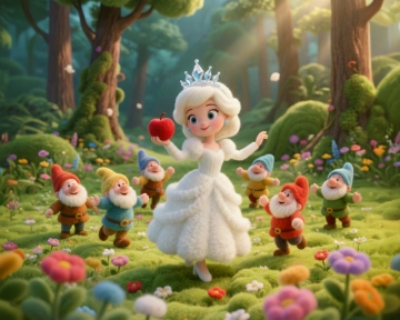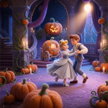 梦幻感十足的卡通插画风,软3D质感融合水彩晕染,呈现冬日童话场景,可爱公主与冰晶鹿群共舞于冰雪城堡前,传递温暖节日氛围。