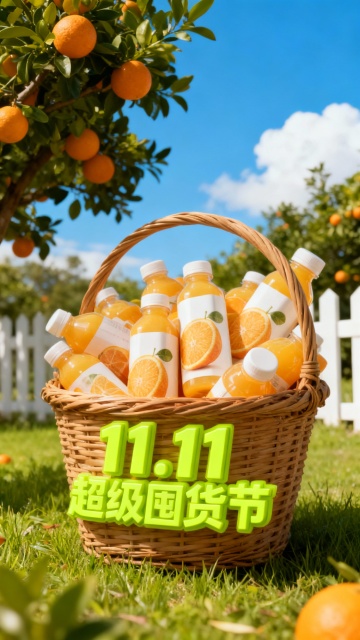 重拟物风与充气风结合,3D质感橙子与卡通元素营造清新可爱氛围,节日促销感十足,传递喜庆趣味的果冻橙主题。