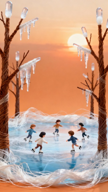 3D渲染风格,以纯净的冰蓝色和透明感白色为主色调,柔和的顶部光源创造出细腻的高光与渐变阴影,呈现光滑的流线型冰面质感,画面中融入连绵起伏的自然山水轮廓,以波浪状的冰雕形态展现山峦与水流的韵律,点缀大小不一、棱角分明的雪花晶体,部分雪花轻盈飘落,部分镶嵌于冰面纹理中,整体营造出清冷、纯净且富有诗意的冬日山水氛围,视觉层次清晰,主体突出,背景为渐变浅蓝天空,空间感开阔,传达出宁静致远的意境。