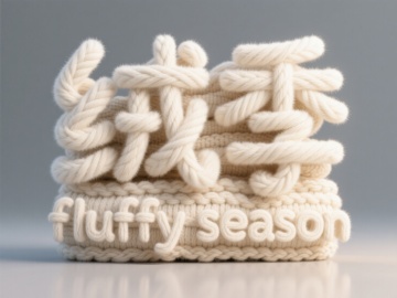 3D毛线编织字体,重拟物风格呈现柔软毛发生长质感,温暖柔和,营造冬季温馨舒适氛围。