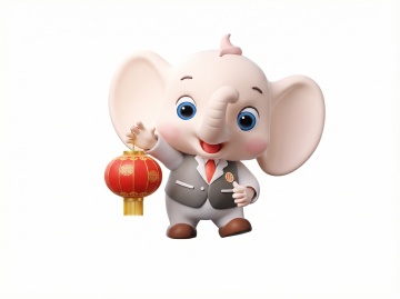 一个浅蓝色小象卡通表情包,身体圆润可爱,大大的扇子状耳朵,双手各三根小手指,穿着具有民族特色的彩色刺绣服饰,正举起右手做拍照手势,左手自然下垂,表情呆萌,背景为纯色浅蓝3D素材