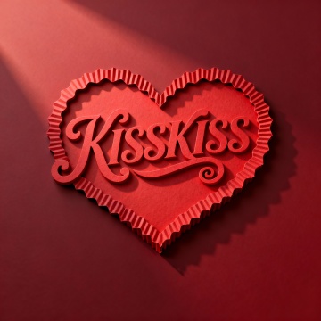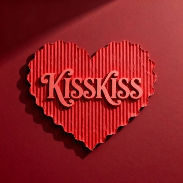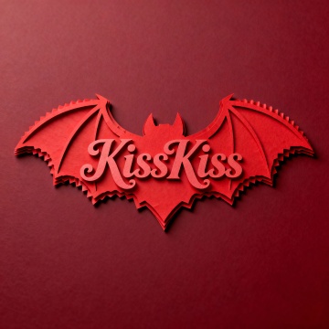 一个以红色为主色调的创意立体纸艺风格LOGO,主体为蝙蝠翅膀轮廓造型,采用瓦楞纸纹理与厚实切割边缘,呈现手工剪裁的层次感与轻微阴影;中央文字“KissKiss”以优雅卷曲的手写艺术字体呈现,字形饱满带装饰性曲线,材质模拟哑光卡纸质感,与背景形成微妙立体浮雕效果;背景为纯净无纹理的深红色纯色平面,强化视觉聚焦与节日氛围;整体构图居中对称,色彩饱和度高,光影柔和均匀,营造温馨浪漫又略带俏皮的视觉情绪,适合作为节日或品牌情感化视觉符号。