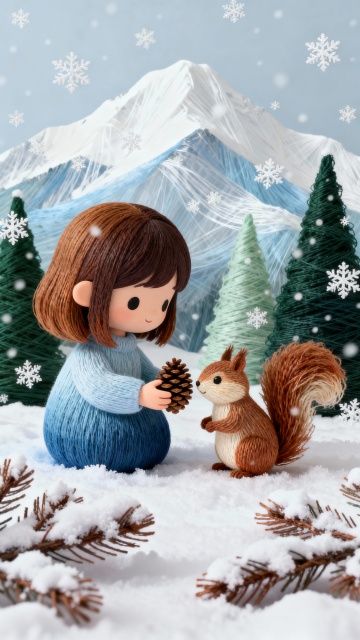 软3D风卡通雪屋,暖光透窗,彩条围巾点缀,鹿与雪橇营造温馨梦幻圣诞氛围。