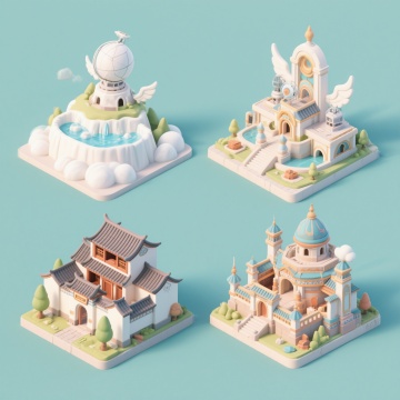 梦幻感与可爱感交织的软3D微缩建筑群,融合卡通风与粘土质感,呈现东方古韵与奇幻城堡的奇妙碰撞,营造出童话般的节日氛围。