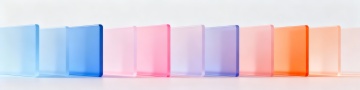 多角度多样式的立体矩形块面背景图,蓝色半透明毛玻璃质感,清透立体,白色背景,矩形块有不同大小和堆叠方式,光线柔和,带有轻微反光效果