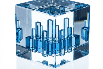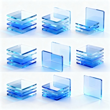 科技感与未来感交织,清透玻璃立方体以几何形态堆叠,3D立体呈现体积感,简约主义风格尽显纯粹之美。