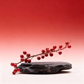 国潮风微缩艺术,木雕质感枯枝托起雪白糕点与玉兰,红果点缀,复古唯美的静谧实景。