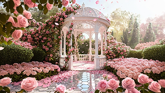 梦幻感3D风玻璃杯漂浮于花海水面,光影交织,蝴蝶翩跹,清透柔美,虚拟自然中的浪漫春日。详情