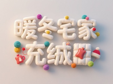 软3D风毛线字体,搭配充气感针织元素,毛发生长细节增添趣味与温馨,营造冬日宅家的可爱氛围。