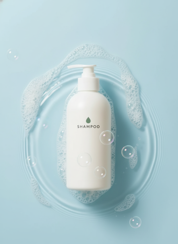 4个不同样式和配色的洗护用品瓶子,每个瓶子都有独特的形状设计和颜色搭配,排列整齐地置于纯白色背景上,整体呈现简约现代的3D渲染风格,光线柔和均匀,瓶身光滑有轻微反光质感,阴影细腻自然,突出产品的干净纯粹与设计感。