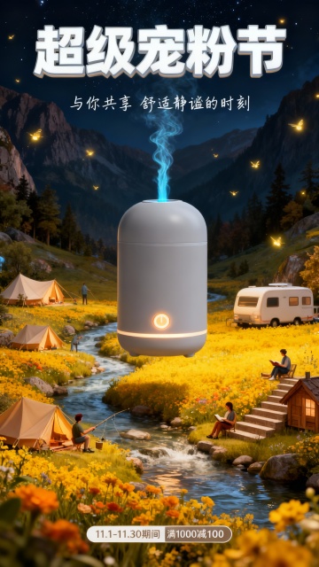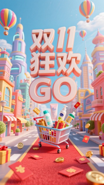 一个巨大的发光的图中商品矗立在梦幻城市的中心广场,礼盒层层堆叠,顶部是一个闪耀的金色五角星,每个礼盒侧面显示着“宠粉节”、“SWEET”、“NICE”等神秘数字与文字,地面铺满发光的棋盘格地板,周围漂浮着彩色气球和礼物盒,背景是霓虹灯牌、云朵状建筑和星空夜空,人群在街道上行走,充满节日庆典与科技感,上方是主标题“超级宠粉节”,下方标注“活动日期:2025.11.1-2025.11.30”3D渲染,超现实风格,赛博朋克与春节元素结合,暖色调灯光,梦幻光影,高细节,未来都市,节日促销氛围浓厚。