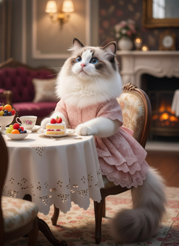 拟人风小猫身着格纹外套与贝雷帽,凝视墙上油画风格的自我肖像,融合3D质感与欧洲宫廷艺术氛围,萌趣中透出文艺气息。