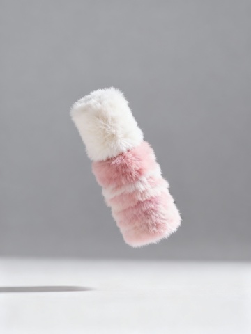双色毛绒瓶身悬浮于极简空间,粉白渐变呼应轻拟物风,毛发生长质感营造甜美柔和的舒适体验。