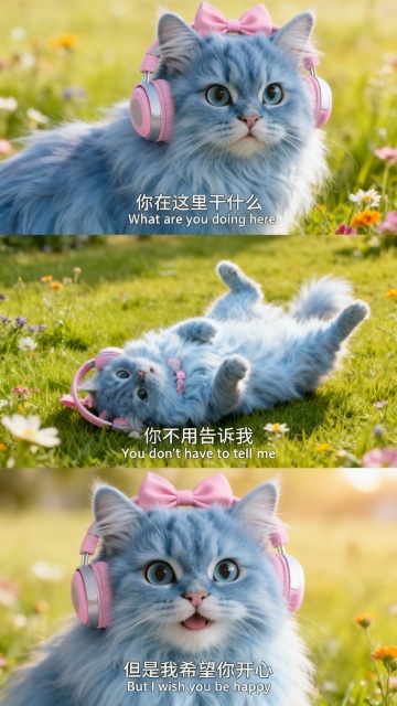 生成三宫格艺术感写真图,横向三宫格,场景为海边沙滩,天空呈淡紫与灰色渐变,海面平静。画面中有猫和参考图一致,脖子上戴着蓝色围巾。最上面一张为近景,站在沙滩上的背影,毛发被风微微吹起,添加中英字幕“怎么还没有开饭 Why hasn't dinner started yet”;中间一张是特写,毛发随风微微飘动,添加中英字幕“你不用告诉我 You don't have to tell me”;下面一张侧身站立于海边,添加中英字幕“我会自己偷偷去拿 I will secretly go get it myself”。整体色调清冷,采用柯达胶片效果,三张图合成一个三宫格,字幕位于底部居中。