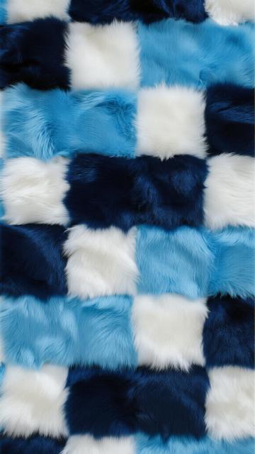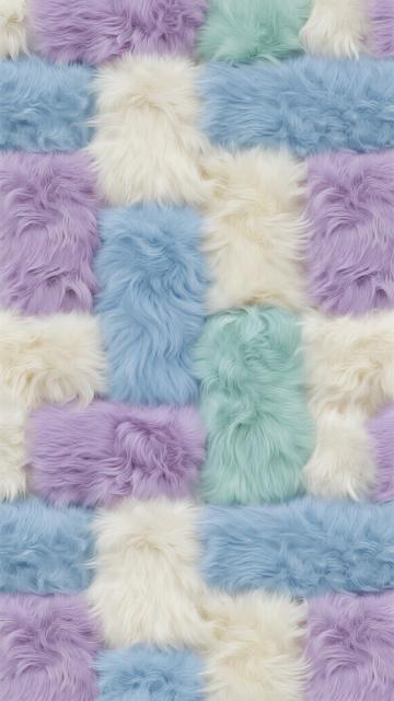 一张由多种蓝色系毛绒材质拼接而成的无缝背景图案,包括浅蓝、湖蓝、宝蓝、粉蓝等不同深浅的蓝色毛绒块,每个毛绒块都呈现出蓬松柔软的质感,绒毛根根分明且带有自然的卷曲和立体感,整体色彩和谐统一,营造出温暖舒适且充满治愈感的氛围,毛绒块之间的拼接自然过渡,形成丰富的视觉层次,光线柔和地洒在毛绒表面,凸显出细腻的纹理和柔和的光泽。