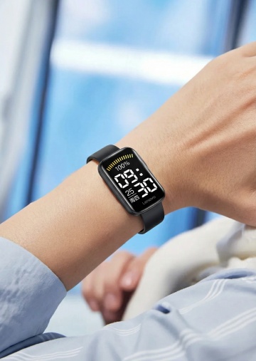 好物分享视频。一个男生抬手腕展示运动手表,在健身房里介绍,不要切换镜头,不要字幕。台词:“跑步全靠这表盯数据!实时看心率、算跑了多少公里,连步频都能测,跑完直接看消耗,不用再查手机。表带软乎乎的不勒腕,黑色表盘超耐脏,充一次能用十天。”
