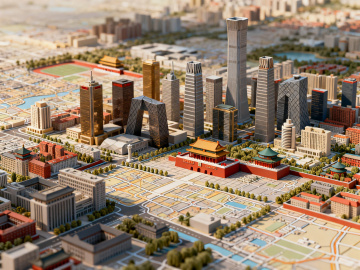 微缩艺术风城市模型,融合中式传统建筑与现代摩天大楼,金属质感与玻璃材质交织,展现科技感与政务感的未来都市图景。