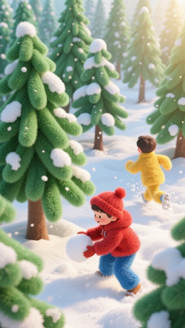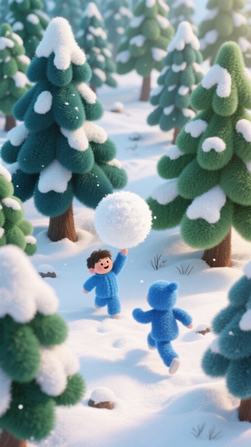 软3D粘土风雪林嬉戏,萌趣童真,梦幻温馨,冬日暖意盎然。
