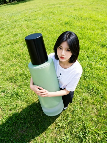 清新绿意与简约白T交织,轻拟物风巨瓶呼应自然,双色设计传递清爽舒适感,实景草坪营造柔和夏日氛围。
