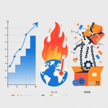 全球能源转型主题插画,画面左侧展现燃烧的化石燃料工厂,黑烟滚滚,右侧是蓝天白云下的太阳能板、风力发电机和绿色森林,中间有一条象征转型的金色道路连接两侧,道路上有向前行走的人群剪影,整体色调从左至右由灰暗转为明亮清新,上方文字“全球能源转型:应对气候危机的必然之路”