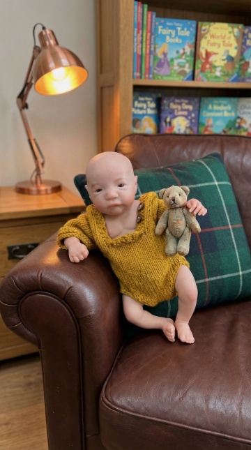 软3D毛绒质感,拟人化小熊身着复古针织裙,搭配卷曲毛发与温暖家居场景,萌趣卡通风中透出温馨治愈感。